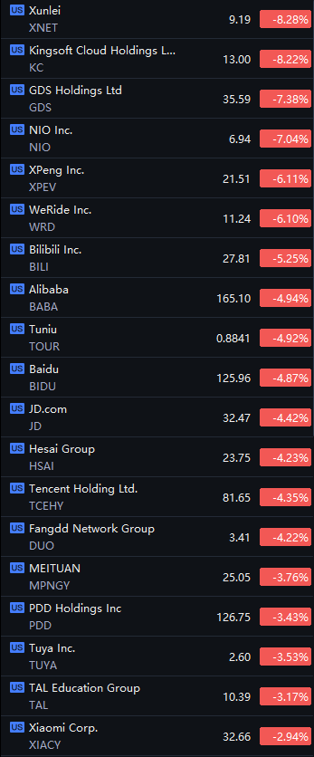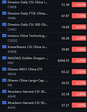 Chinese ADRs and ETFs tumbled. CWEB, YINN and Nio down 7%; Alibaba, Baidu and CHAU down 5%.