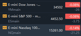 At 08:15 a.m. ET, Dow e-minis were down 26 points, or 0.08%, S&P 500 e-minis were down 3.75 points, or 0.08%, and Nasdaq 100 e-minis were down 21.25 points, or 0.14%.