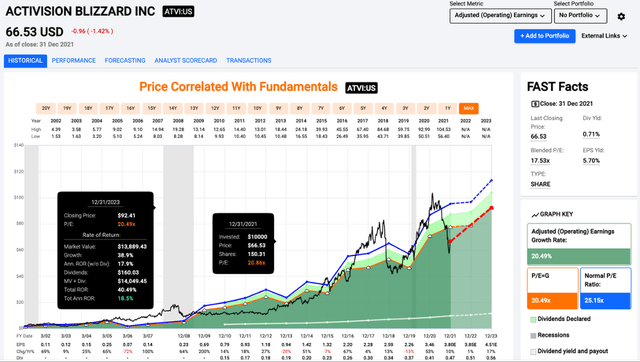 Activision is one of the giants in the video game industry. With three segments that all have huge operating margins, Activision is an attractive growth at a reasonable price pick. The company was in the news in 2021 for sexual harassment and discrimination allegations, which led to a selloff in the second half of the year.