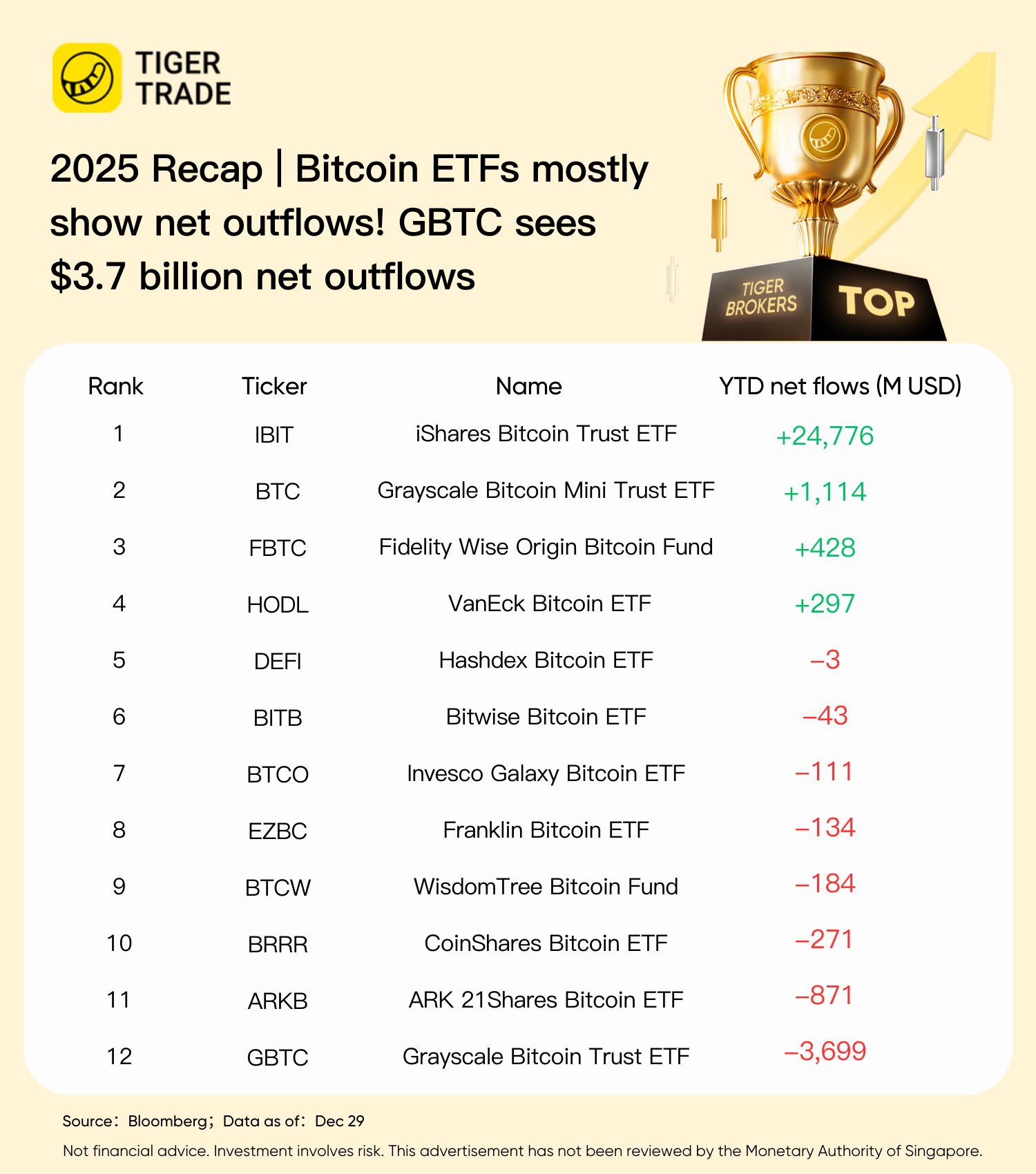 In fact, excluding IBIT, U.S.-listed spot bitcoin ETFs collectively saw $3.5 billion of net outflows in 2025.