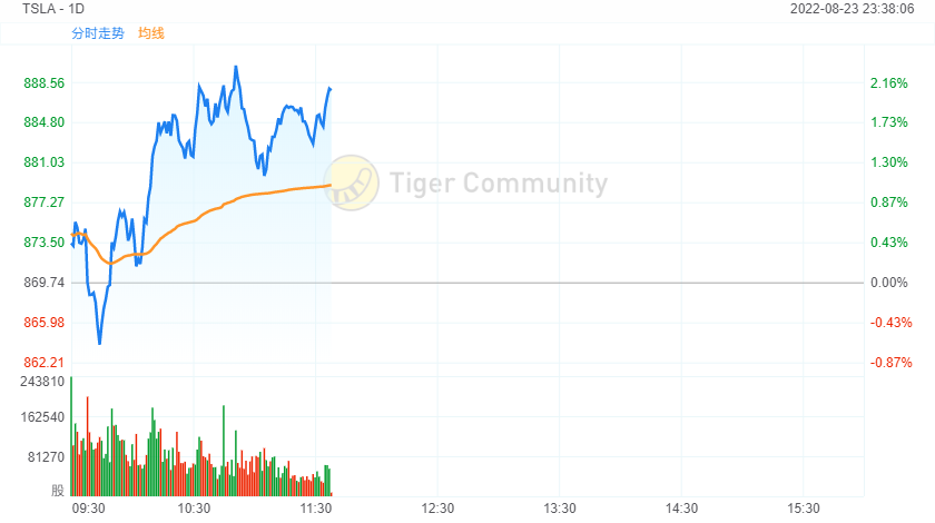 Tesla shares gained 2% in morning trading. Tesla is moving forward with its second stock split on Aug. 24. Shareholders approved the 3-for-1 stock split at the company's annual meeting this month. The shares will trade at a split-adjusted price on Aug. 25.