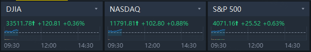 U.S. stocks extended their gains in morning trading; DJIA rose 0.36%, S&P 500 gained 0.63% while NASDAQ jumped 0.88%.