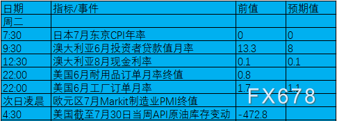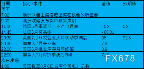 此外,投资者可关注美国至7月31日当周初请失业金人数和美国6月贸易帐数据。
