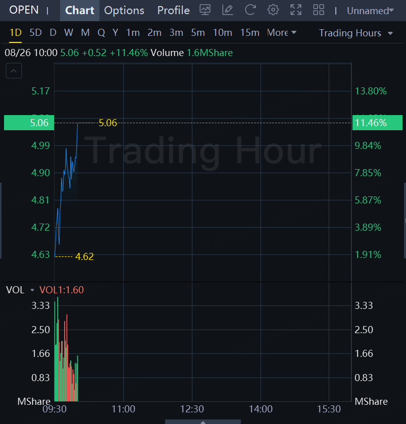 Opendoor Technologies Inc (OPEN) stock is soaring 11% in morning trading on Tuesday, continuing its recent momentum as part of the ongoing meme stock frenzy in the real estate sector.