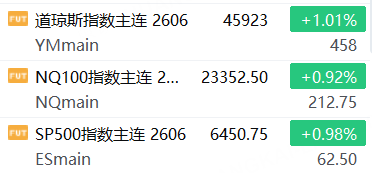 3月31日,美股三大股指期货上涨,截止发稿,道指期货涨1.01%,纳指期货涨0.92%,标普500指数期货涨0.98%。
