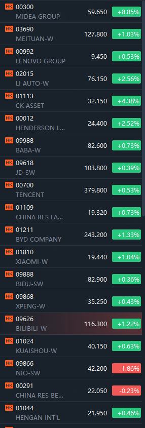 Elsewhere, food delivery platform Meituan jumped 1 per cent to HK$127.80, personal computer giant Lenovo gained 0.53 per cent to HK$9.45 and electric vehicle company Li Auto added 2.56 per cent to HK$76.15.
