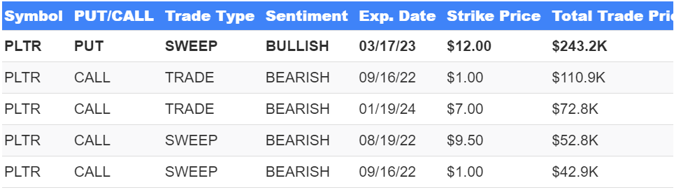 Looking at options history for Palantir Technologies, we detected 15 strange trades.