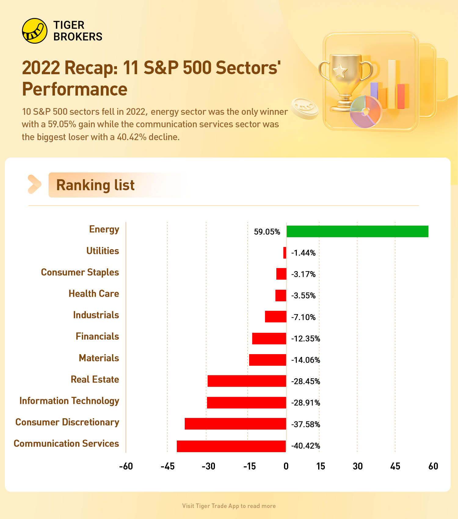 The following table details the overall performance of the S&P sectors in 2022.