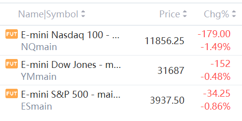 Dow Jones Industrial Average futures lost 158 points, or 0.48%, while the S&P 500 futures fell 0.86% and Nasdaq Composite futures fell 1.5%.