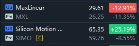 MaxLinear tumbled over 11% while Silicon Motion Technology crashed nearly 9% in premarket trading.