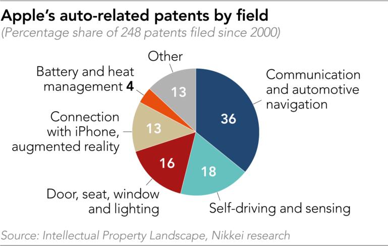 Nikkei and Intellectual Property Landscape found that as of June 1, Apple applied for and published 248 automobile-related patents after 2000.