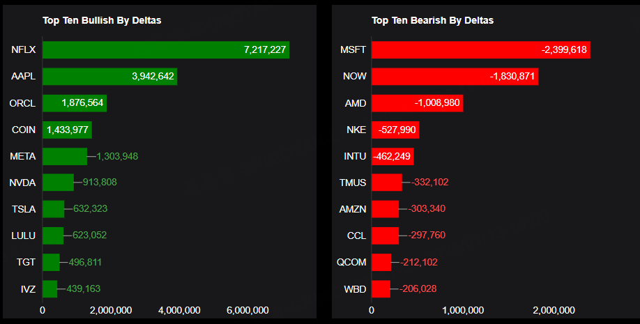 Top 10 bullish stocks: NFLX, AAPL, ORCL, COIN, META, NVDA, TSLA, LULU, TGT, IVZ