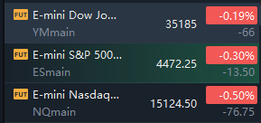 At 08:34 a.m. ET, Dow e-minis were down 66 points, or 0.19%, S&P 500 e-minis were down 13.5 points, or 0.30%, and Nasdaq 100 e-minis were down 76.75 points, or 0.50%.