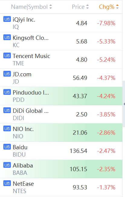 Hot Chinese ADRs Slipped in Morning Trading. Alibaba, Pinduoduo, Baidu, JD.com, iQiyi, DiDi and Nio fell between 2% and 8%.
