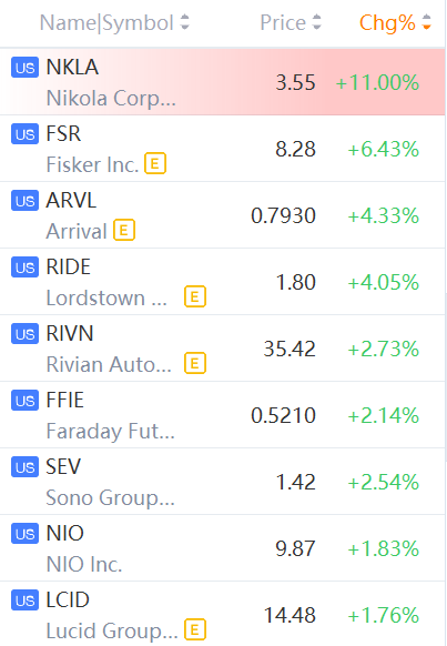 Some EV shares gained in morning trading. Nikola surged 11%; Fisker jumped more than 6%; Arrival, Lordstown rose over 4%.