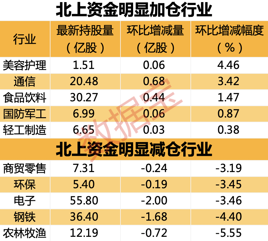北上资金逆市加仓,美容护理、通信、食品饮料行业成“香饽饽”。