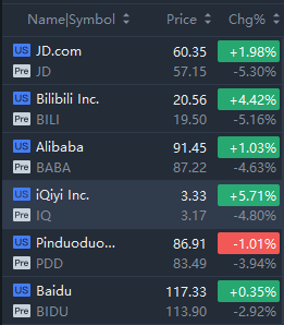 Hot Chinese ADRs crashed in premarket trading; JD.com and Bilibili Inc. fell over 5%.
