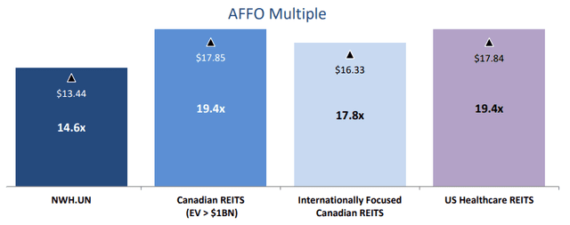 You would expect such a company to trade at a high valuation in today's 0% interest rate world, but contrary to all logic, it is currently priced at a 5% discount to net asset value, and a steep discount to peers based on P/AFFO: