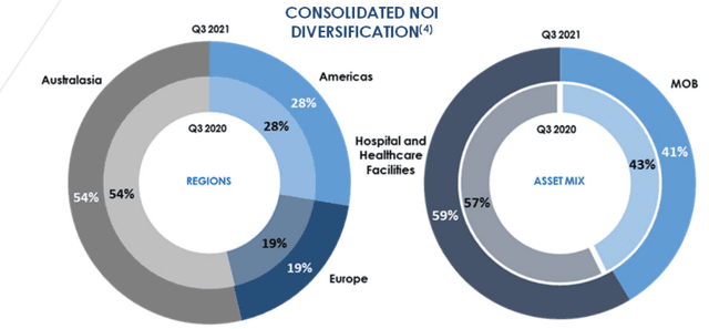 International diversification:Unlike most healthcare REITs that only focus on one country, NWHUF has intentionally diversified across multiple continents and countries in order to diversify its risks. This is especially helpful in the healthcare space because you don't want to be dependent on a single country that may change rules/reimbursement plans from one year to the next.