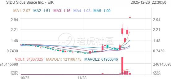 太空概念龙头股 Sidus Space Inc. 暴涨近40%,12月涨幅已接近215%。