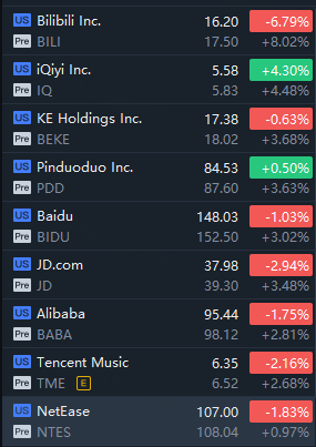 Hot Chinese ADRs took off in premarket trading; Bilibili Inc. surged over 8% while iQiyi Inc. rose over 4%.