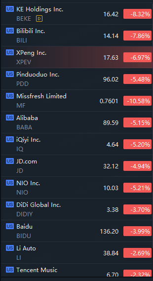 Hot Chinese ADRs Turned Down in Morning Trading; KE Holdings and Bilibili Crashed Around 8%