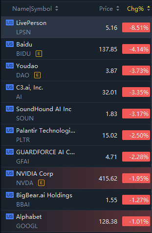 AI Stocks Extended Their Losses in Morning Trading; LivePerson Crashed Over 8% While C3.ai Fell Over 3%