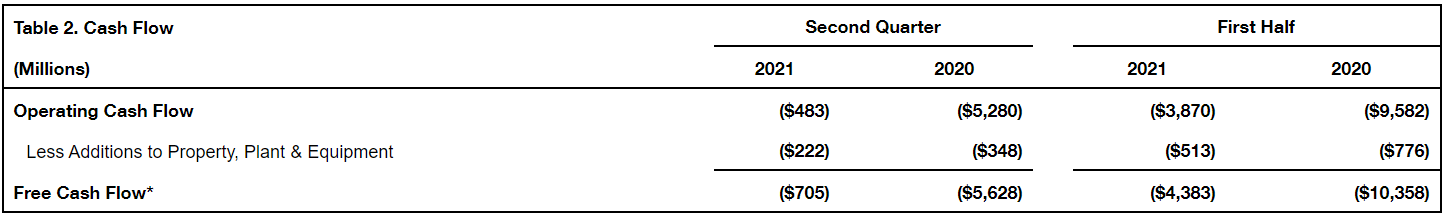 - Operating cash flow of ($0.5) billion; cash and marketable securities of $21.3 billion