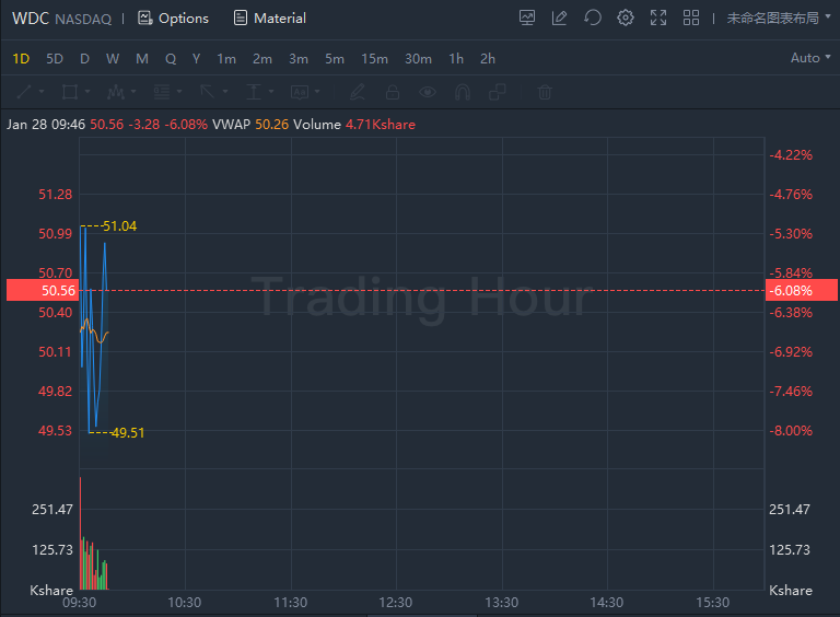Western Digital Tumbled Over 6% in Morning Trading and Reached One-year Low