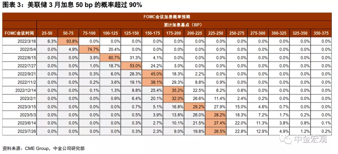 美国1月CPI数据再超预期,同比增速达7.5%,创1982年以来最高水平。数据公布后,市场对美联储紧缩的预期显著抬升,利率期货市场反映的3月加息50 bp的概率已超过90%,2022年加息预期次数也已达到7次。但从股市和债市情况来看,投资者仍在犹豫这次美联储紧缩是否仅是“雷声大,雨点小”。