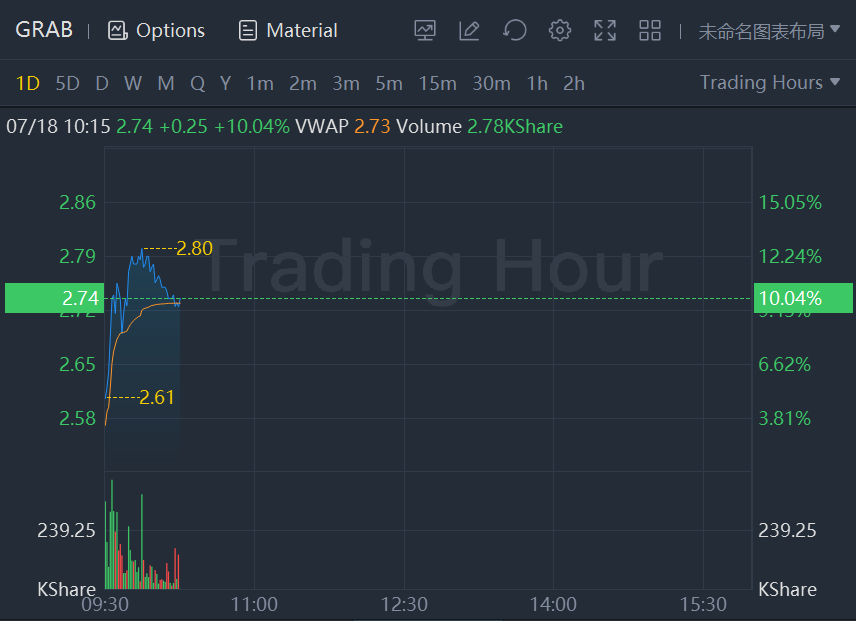Grab shares jumped 10% in morning trading after JPMorgan analyst Ranjan Sharma upgraded Grab Holdings to Overweight from Neutral with a $3 price target.