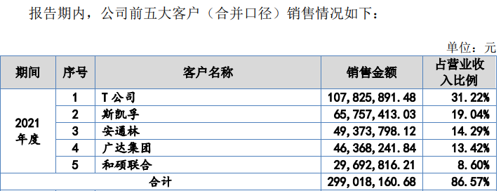 2019年度、2020年度和2021年度,公司向前五名客户销售额占当期营业收入的比例分别为91.29%、85.93%和86.57%,客户集中度较高。