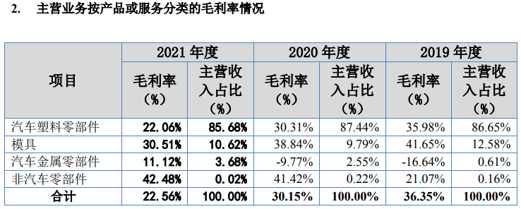 骏创科技称,这主要系公司汽车塑料零部件在保持销售占比相对稳定的情况下,毛利率逐年下滑。