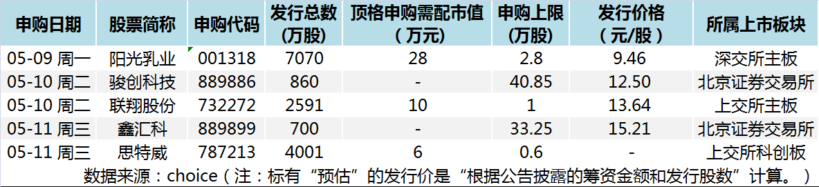 根据新股发行安排,下周有5只新股将上新,其中1只在科创板,为2只主板股,2只在北交所。