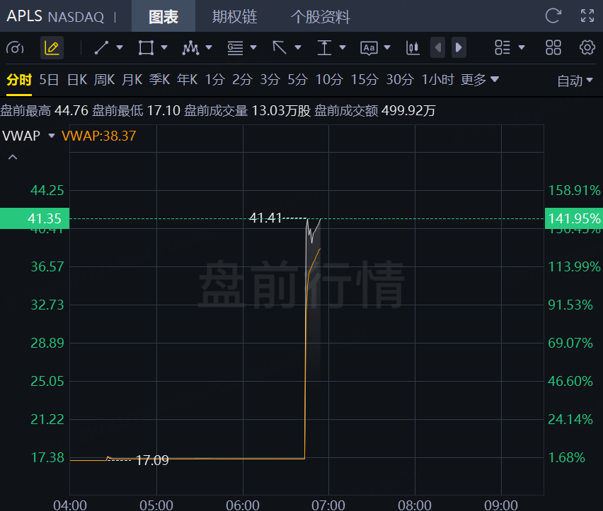 3月31日,Apellis制药盘前飙升逾140%!Biogen将以每股41美元现金加CVR(或有价值权)收购该公司。