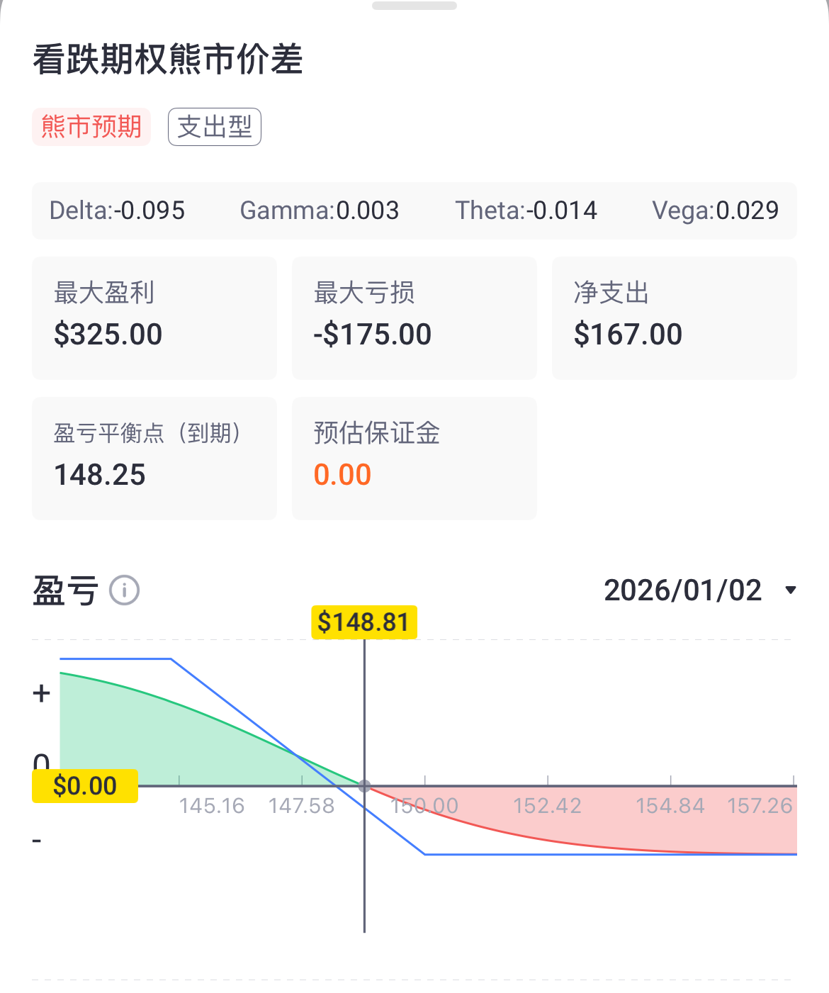 卖出一张2025年11月28日到期、行权价为148美元的 Put