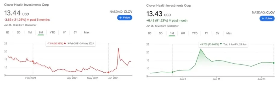 After Hindenburg's bet, CLOV share price plunged 50% year-to-date by the end of May. At that point, the stock caught the attention of Wall Street Bets “apes” and became a new target of meme mania. Since early June, stocks have risen 190% and then fallen around 50% after peaking.