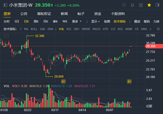 (May 27) The Hang Seng Index fell 0.57 percent or 167.62 points to 28,998.39. XIAOMI-W rose more than 4%, as it posted better-than-expected earnings.