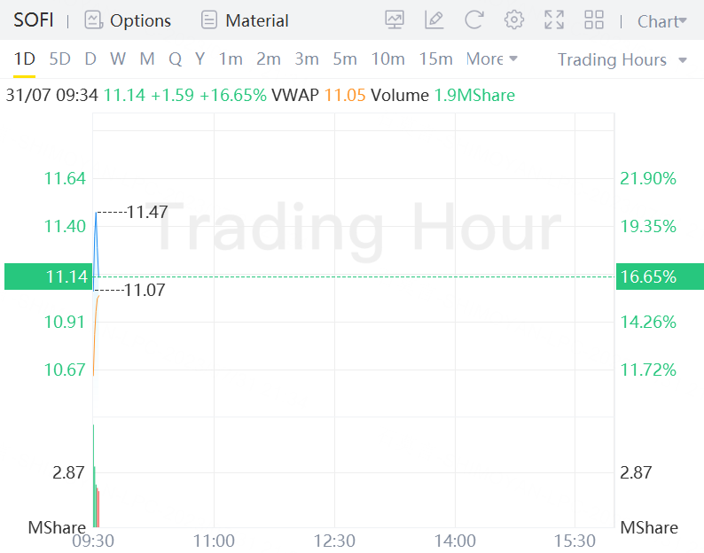 Shares of SoFi Technologies Inc. were gaining 16.65% in Monday’s morning trading after the financial-technology company upped its earnings outlook for the full year, while beating expectations for the latest period.