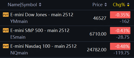 At 7:50 a.m. ET, Dow e-minis were down 162 points, or 0.35%, S&P 500 E-minis were down 28.75 points, or 0.43%, and Nasdaq 100 E-minis were down 119.75 points, or 0.48%.