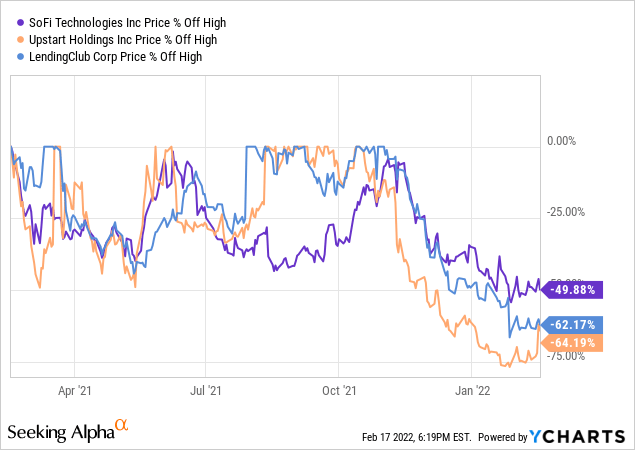 SoFi Technologies (SOFI), Upstart Holdings (UPST), and LendingClub (LC) all saw their shares drop by 50% to 60%+ from the highs they hit last year. PayPal thus is not an outlier. Instead, it has performed more or less in line with how some of its peers performed. The whole industry was trading at unreasonable levels last year and has now been correcting for months.
