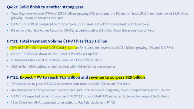 PayPal is a household name with strong brand recognition and belongs to the largest payment companies in the world. Its total payment volume has easily surpassed $1 trillion in 2021: