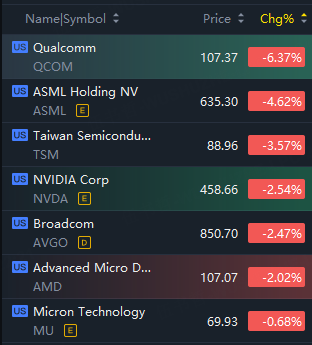 Major Semiconductor Stocks Stayed Red in Morning Trading; Qualcomm Slipped Over 6% While ASML Slid Nearly 5%