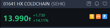 HX COLDCHAIN rose 14% on debut in the Hong Kong.