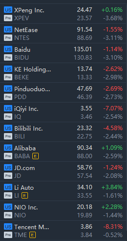Hot Chinese ADRs slid in premarket trading, with XPeng and Netease falling over 3%.