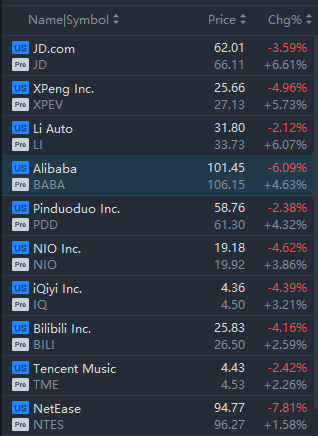 Hot Chinese ADRs rebounded in premarket trading, with JD.com jumping nearly 7% and Alibaba jumping over 4%.