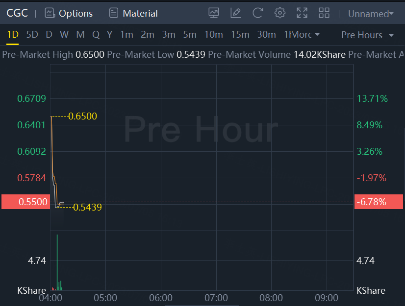 Canopy Growth stock drops nearly 7% in premarket trading Wednesday after soaring 52% Monday.