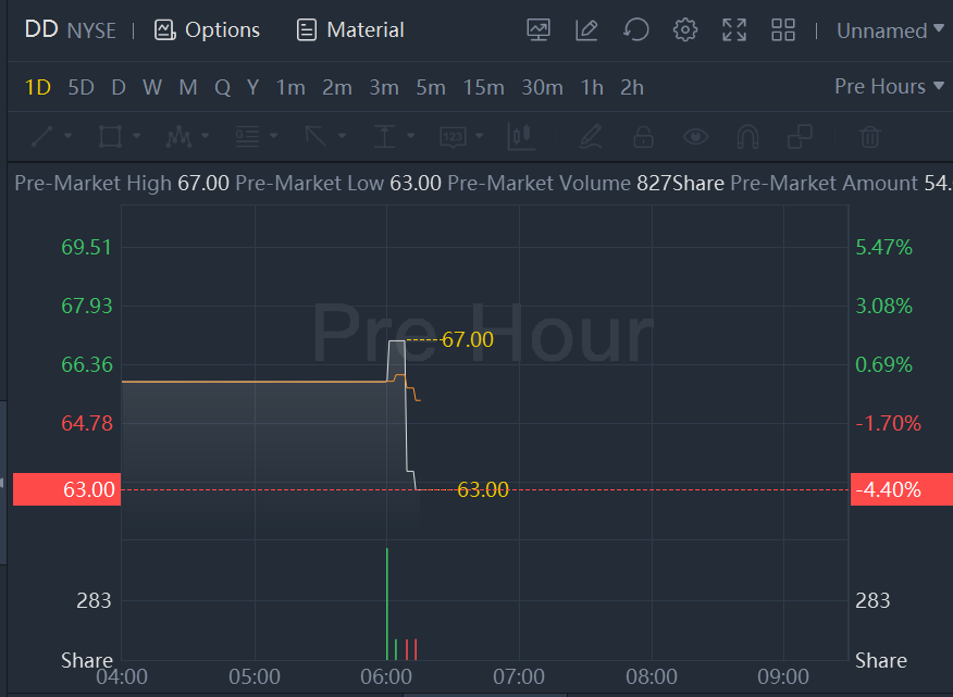 Dupont shares slipped 4.4% as Q1 sales miss estimate.