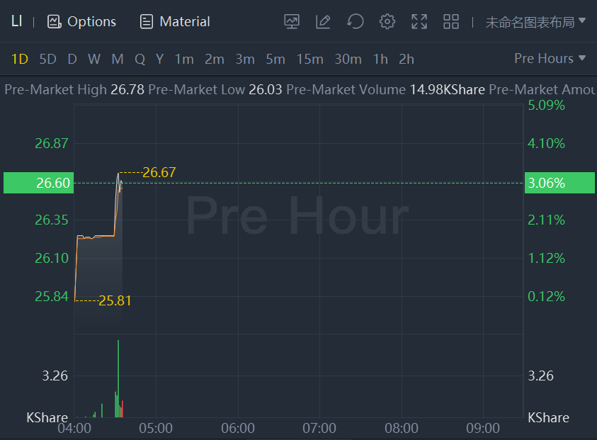Li Auto shares rose 3% in premarket trading.