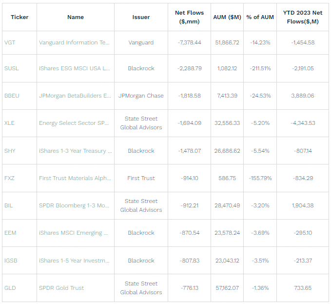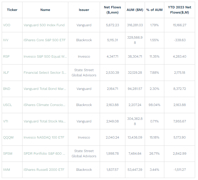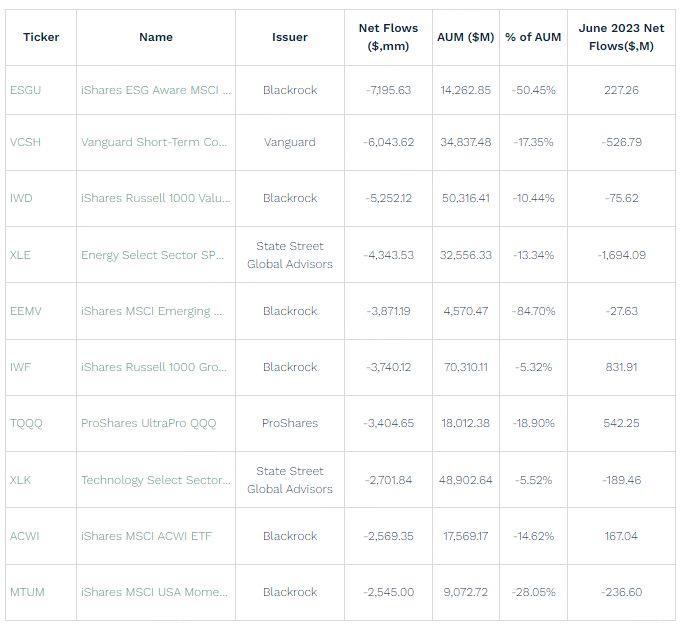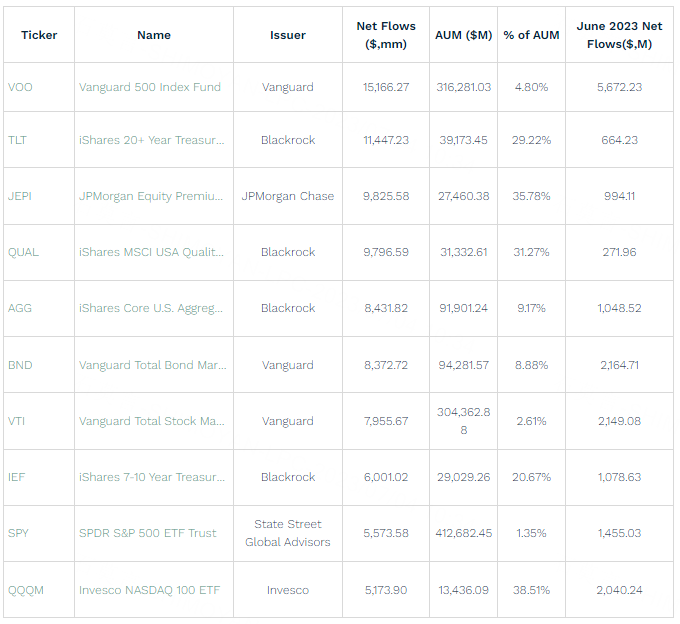 In terms of individual ETFs, the Vanguard 500 Index Fund (VOO) topped the 2023 inflows list at the end of the second quarter, with year-to-date inflows of $15.2 billion.